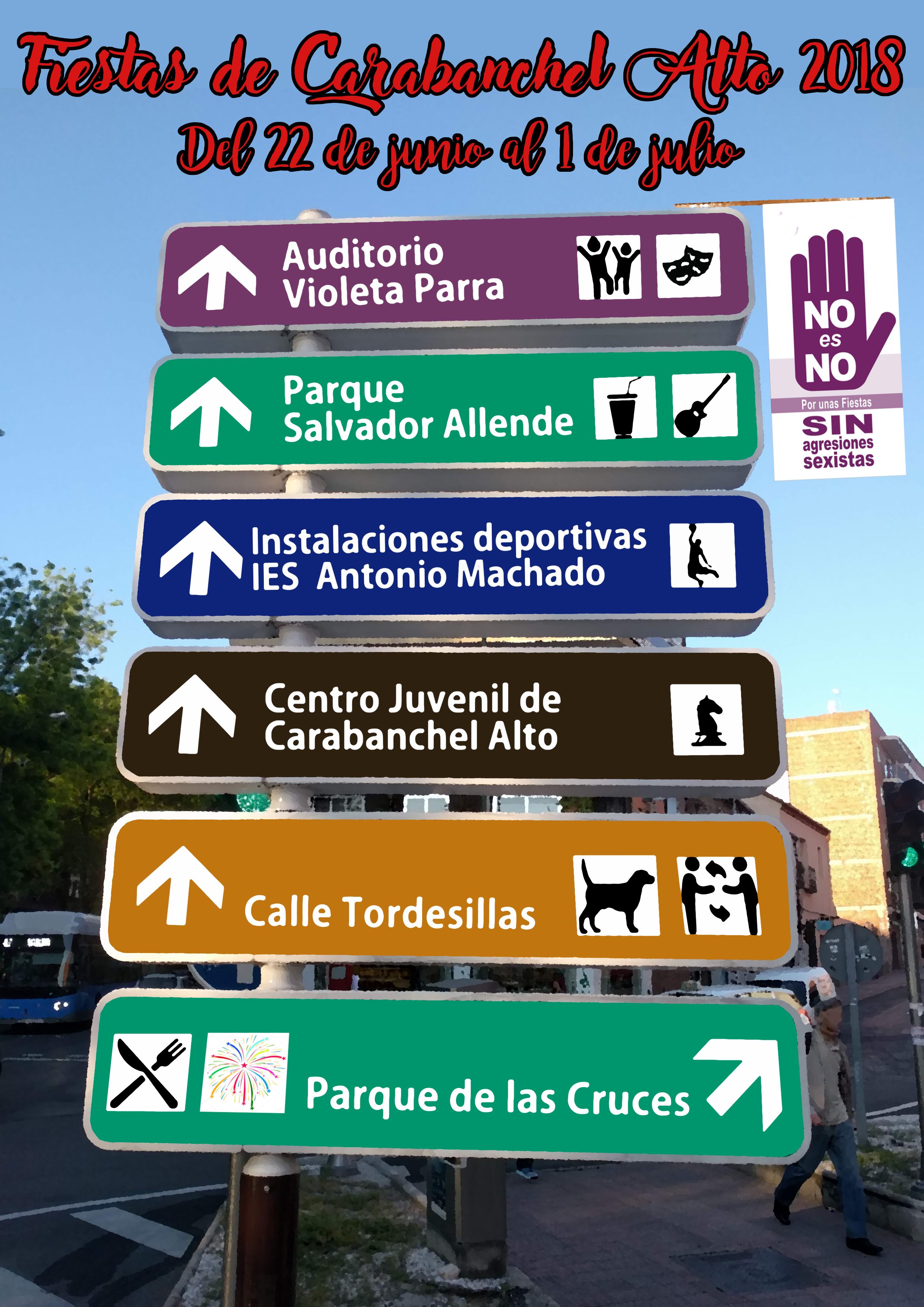 Esta es la programación de las Fiestas de Carabanchel Alto 2018 que se celebrarán entre el 22 de junio y el 1 de julio. Todas las actividades tendrán lugar en el recinto ferial del Parque Salvador Allende (junto al Metro de La Peseta) excepto en las que se indica otro lugar.