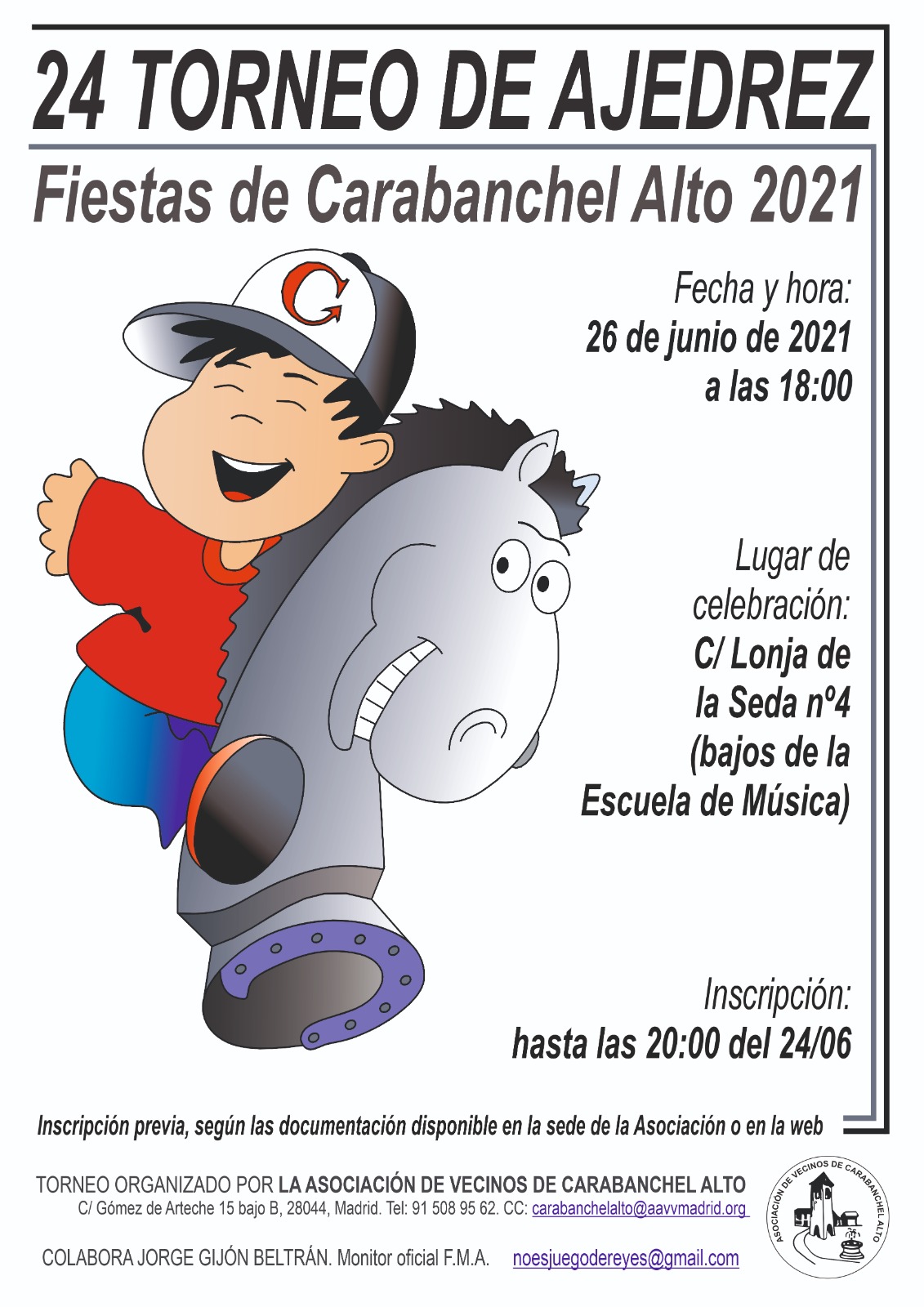 El próximo sábado 26 de junio celebraremos la 24ª edición del Torneo de Ajedrez de Carabanchel Alto.