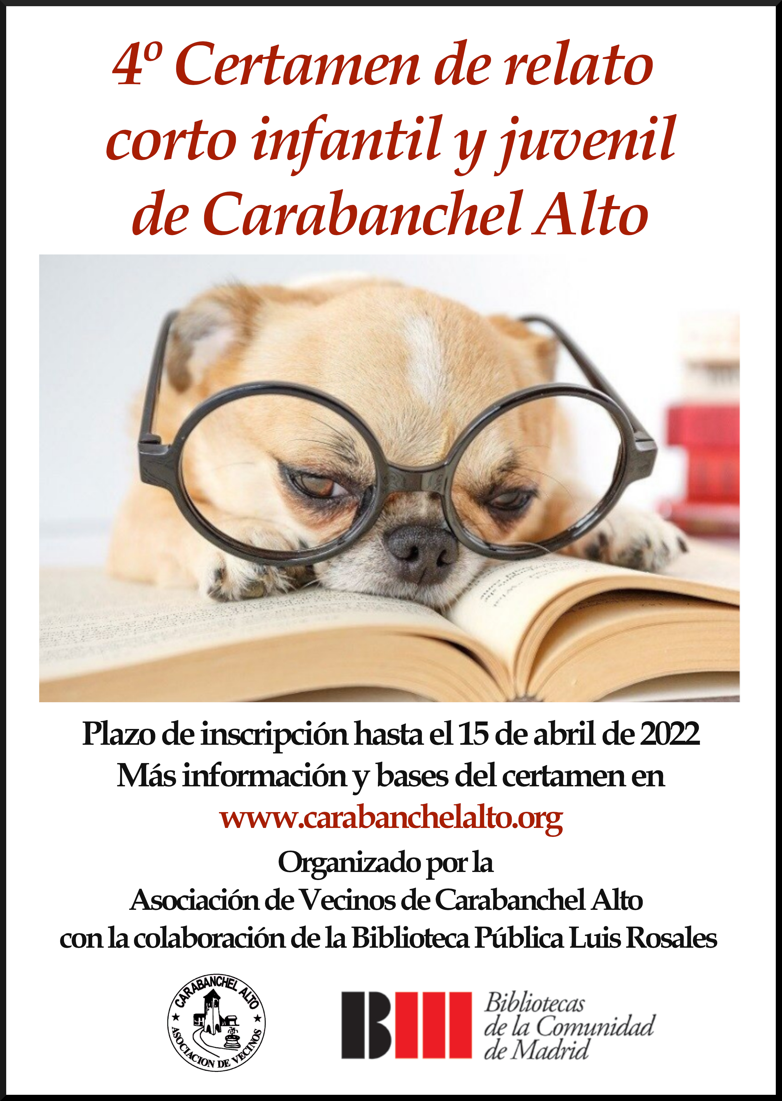 Con motivo de la celebración de la Fiesta del Libro de Carabanchel Alto, el próximo 24 de abril, invitamos a las niñas, niños y jóvenes a participar en este cuarto certamen del barrio.